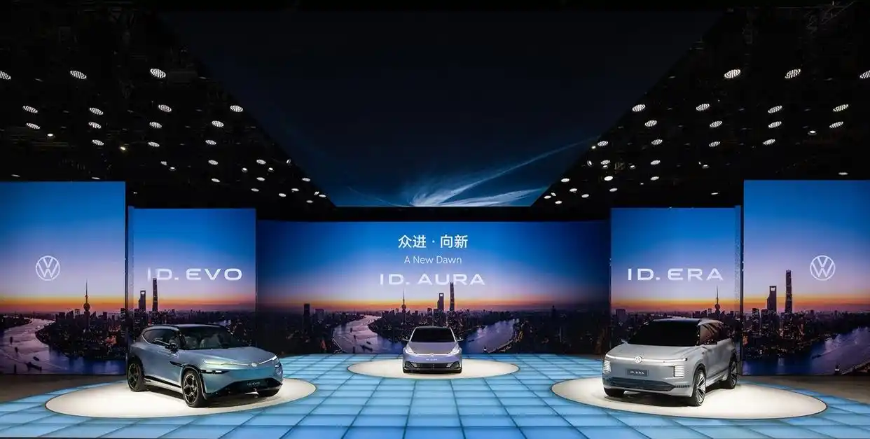 为了拓宽产品线,就要向商场和用户预览行将到来的新车型:群众带来了我国本乡三个合资厂的概念车:由上汽群众研制的 ID. ERA 概念车,这是一款全尺度增程 SUV,归纳续航超 1000 公里;群众安徽的 ID. EVO 概念车,展示了 ID. 宗族未来新车的全新样貌;以及一汽 – 群众的 ID. AURA 概念车,这是一款专为我国打造的紧凑型轿车。这三款车型的量产版别将别离面临三个细分商场,都是可以走量的车型。从另一个视点来说,咱们也感触到了群众在我国的根底产能和体量不小,假如新能源车产品线发力,对商场是一个比较大的冲击。